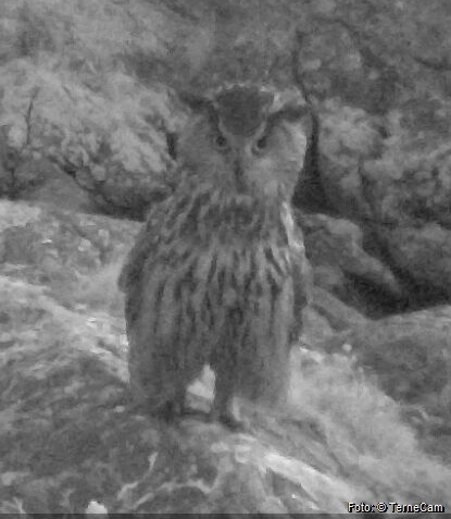 Hubro for 5. gangen Nå er det 5. gangen vi har besøk av hubro i kolonien. Denne gangen var den helt oppe mot kamera før den forsvant.